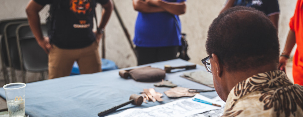 We then visited the former home and workshop of legendary Carnival craftsman and metalworker Ken Morris. A self-taught artist, Morris revolutionized copper work in Trinidad and seamlessly blended fine art with Carnival design. His home—a traditional two-family barrack-style house—includes a shed where he once crafted his pieces.